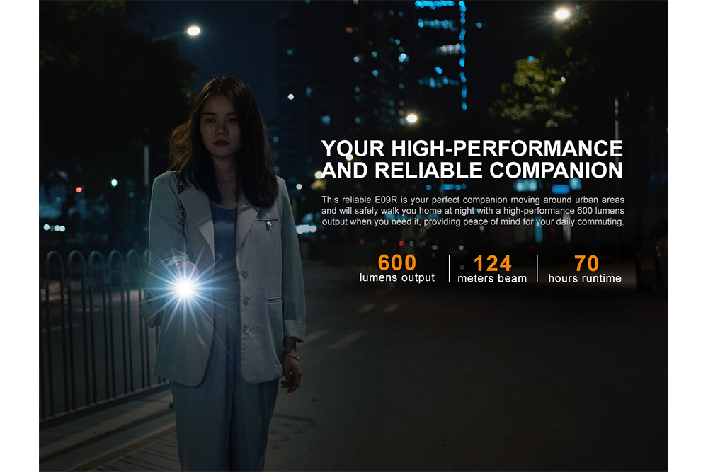 Fenix E09R Rechargeable High-Output Flashlight - 600 Lumens