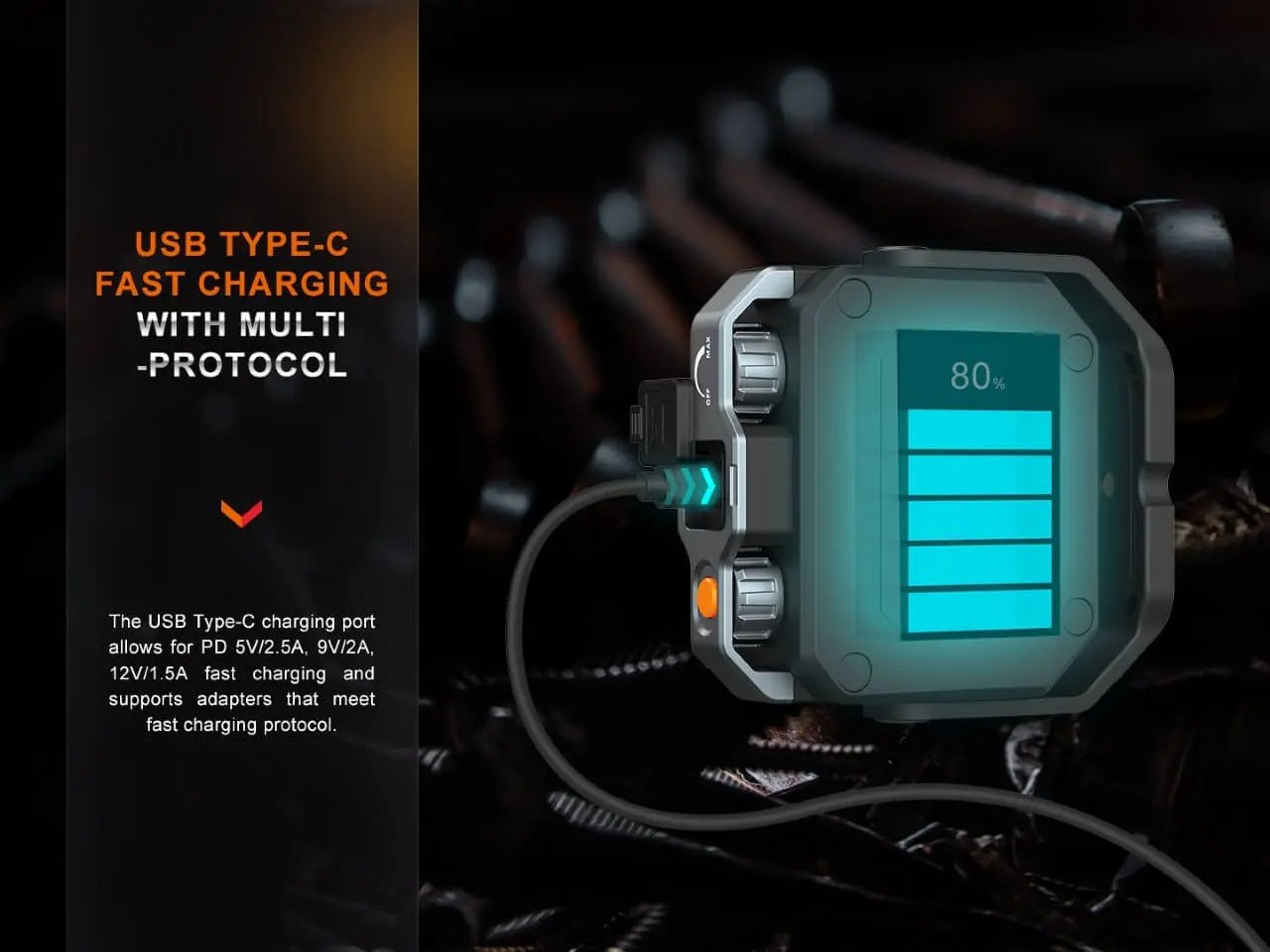 The Fenix CL28R is an extremely popular light that can be useful for a variety of applications - from camping to professional photography to construction to auto repair. It offers a "stepless" brightness adjustment from 10 to 2000 lumens and stepless color temperature regulation from 2700K to 6500K. With its 360° rotating handle, magnetic base, and tripod socket, the CL28R has an ultra-wide 160° beam angle to satisfy various needs. The red light mode preserves night vision or can be used for emergency signaling. The 10,000 mAh rechargeable battery offers up to 45 days of run time and can be fast-charged with USB C in 4 hours. It is also resistant to 1.5m drops and has an IP66 water-resistance rating, ensuring a durable and reliable experience.